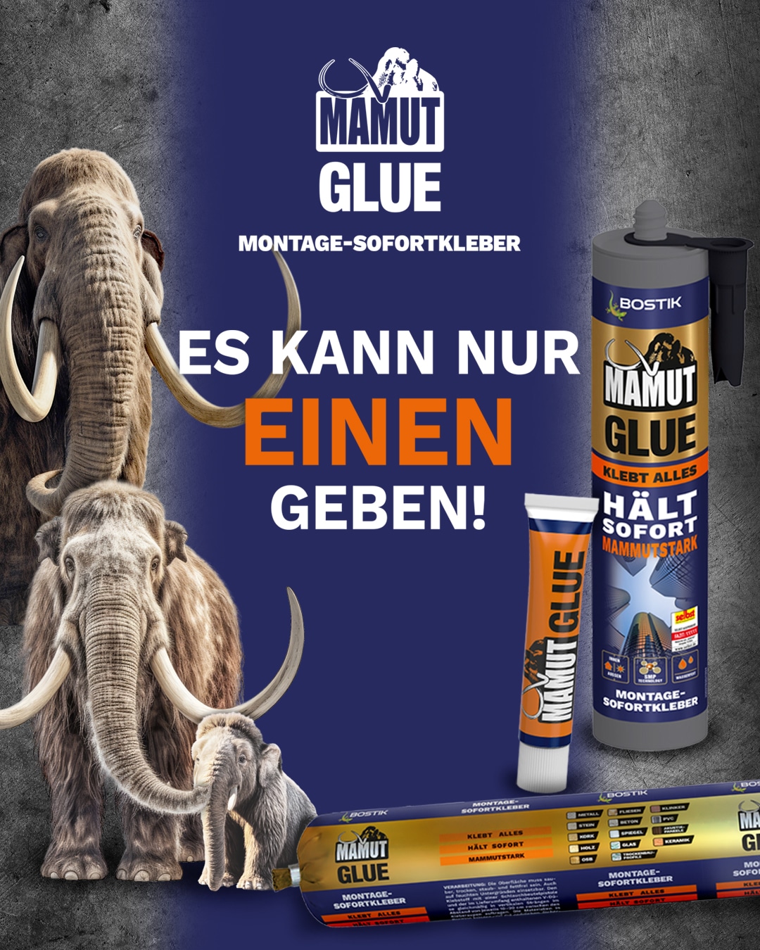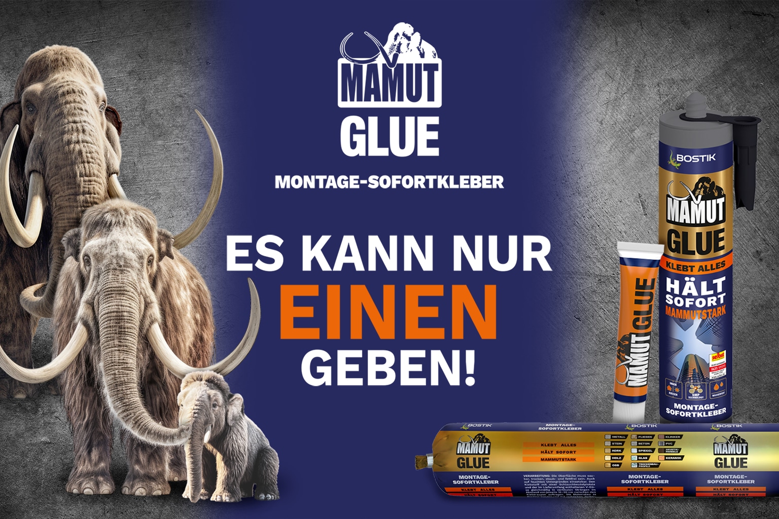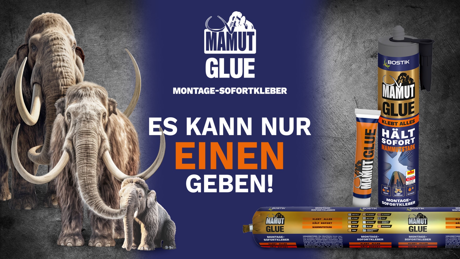 Klebt alles. Hält sofort. Mammutstark!
